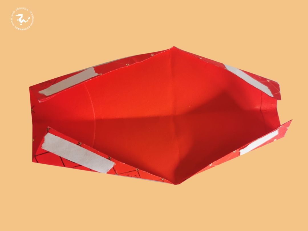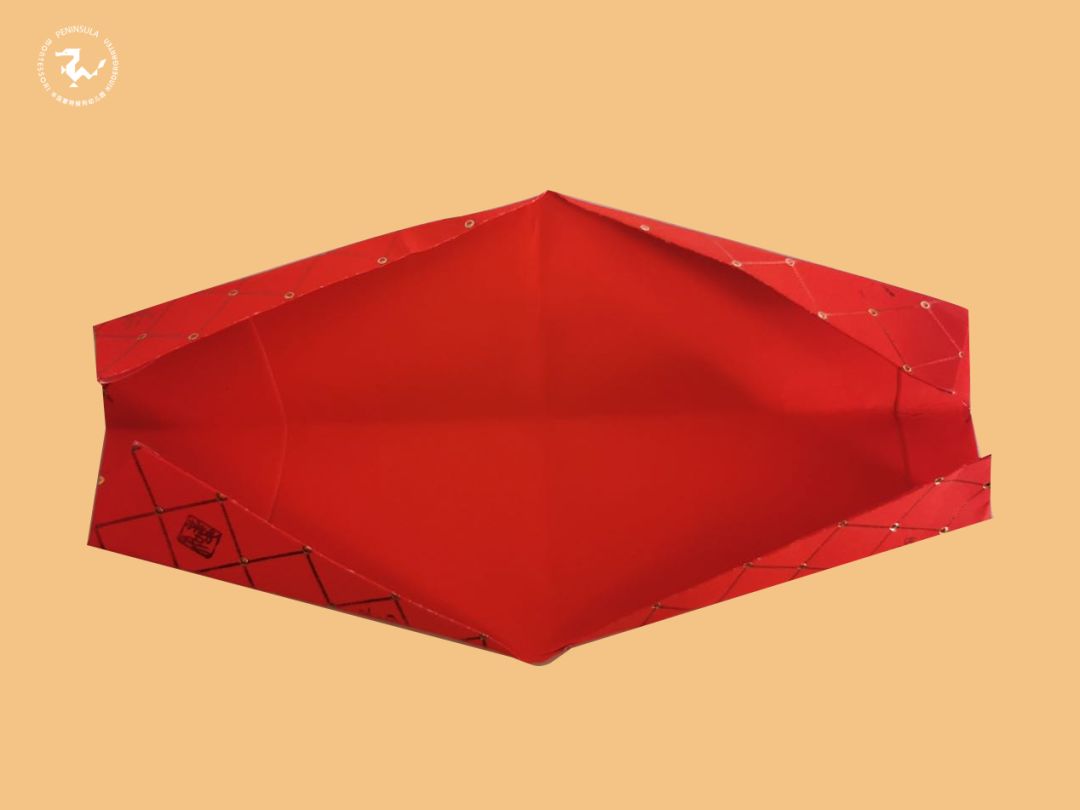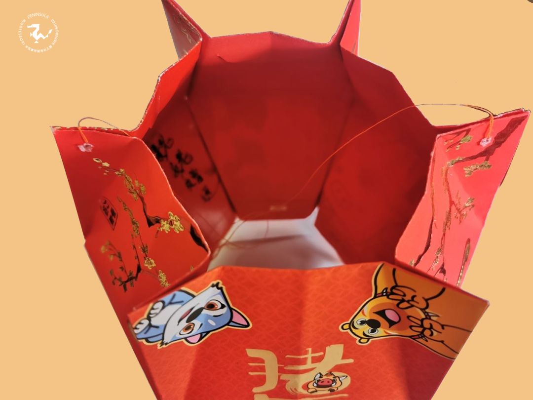 第五步:六个红包都对折好后,在四个角上贴上双面胶